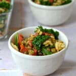 Pendant ce temps, faire cuire l'orzo selon les instructions sur l'emballage. À la fin de la cuisson, ajoutez le kale lavé et haché. Égouttez et réserver pour la prochaine étape.